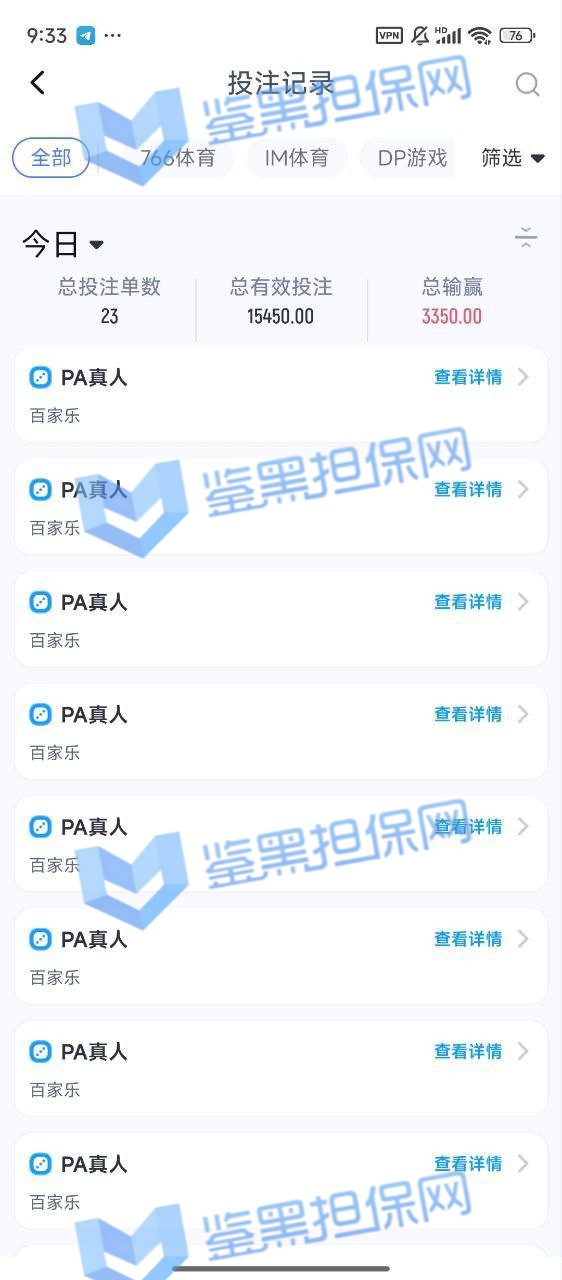 2、鉴黑担保网维权专员了解到此会员在PA真人游戏里面投注,提款迟迟未到账,会员联系平台客服得到的回复是投注过程中存在违规行为,故扣除部分金额退回3400元后冻结账号。