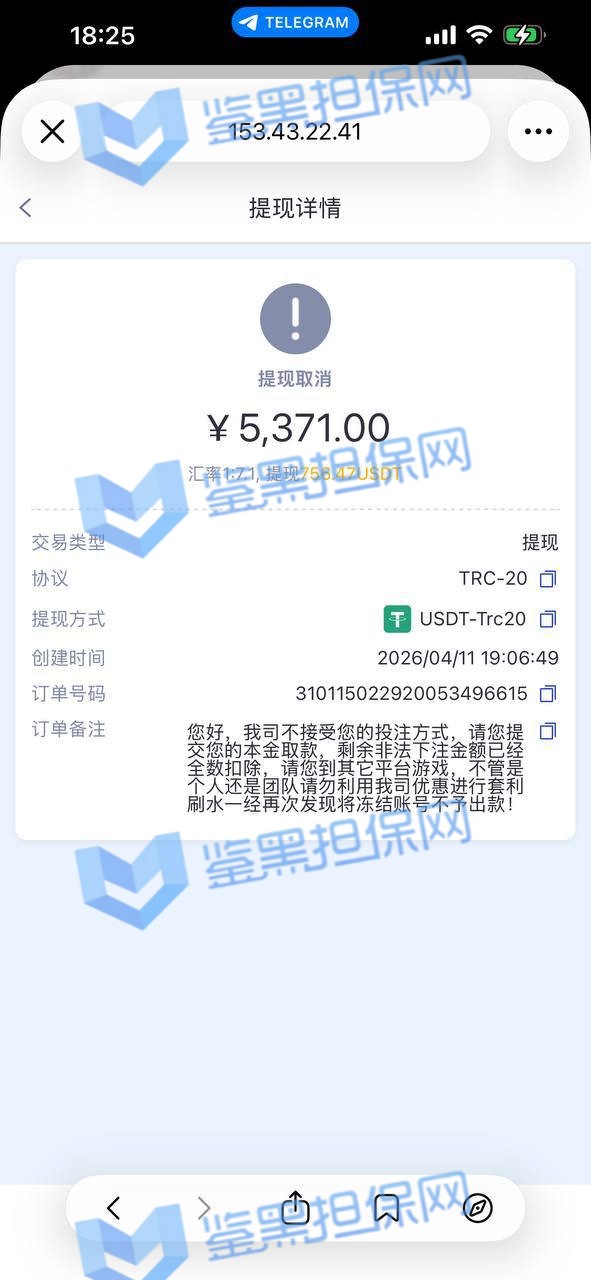 3、由于该平台判定玩家存在套利刷水行为,但没有相关证据加持,虽然已经退回本金,但是盈利金额也相对较多,属于玩家的博弈收获,直接扣除涉嫌黑款行为,还请广大玩家远离!!