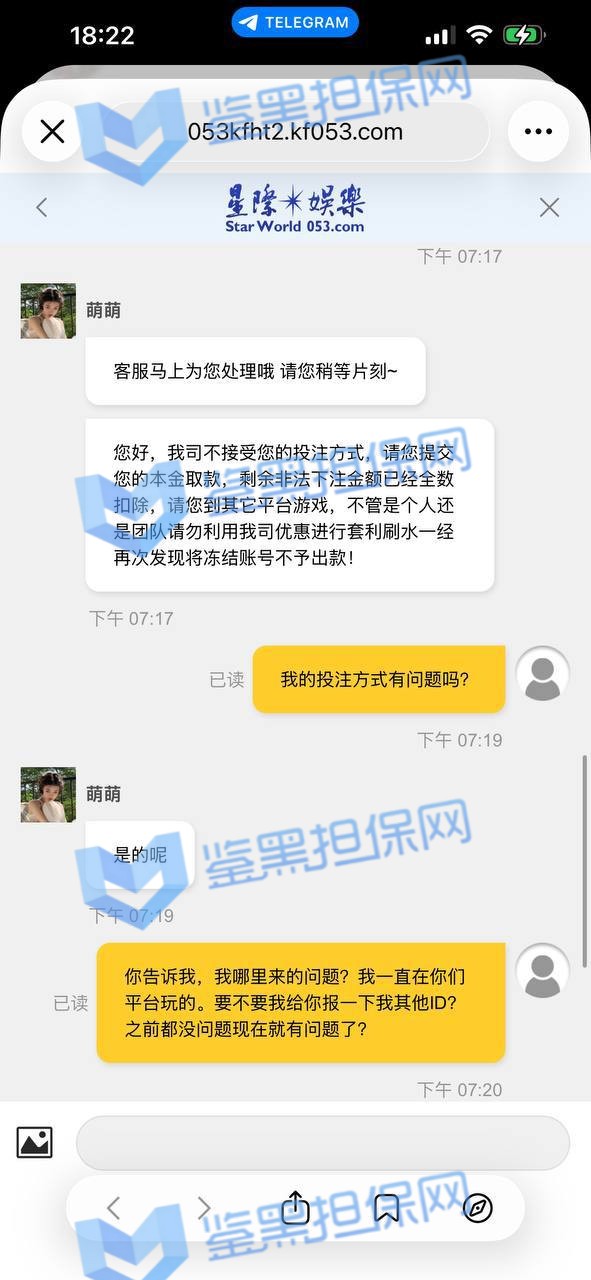2、鉴黑担保网维权专员联系该平台相关负责人,对方表示该会员游戏时存在套利刷水行为,平台不欢迎此类套利行为玩家,做出的处理是扣除盈利退本金。维权专员让其提供相关异常投注注单进行复核,对方拒绝提供,多次表示本金已退回,该会员需更换其他地方游戏。
