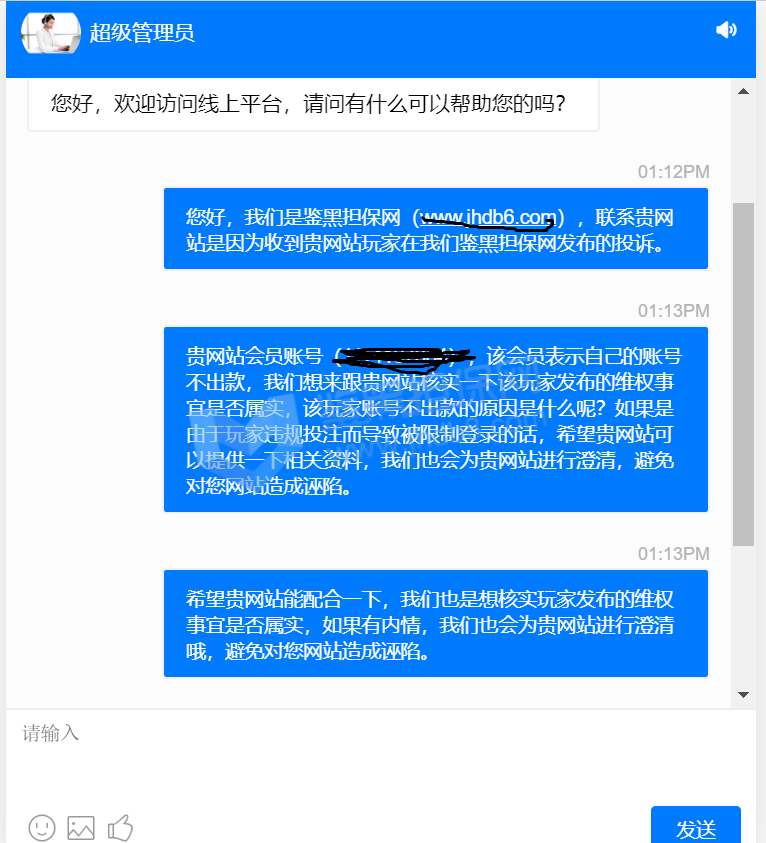 4.用户提交维权需为本人提交,若代替让人发布维权鉴黑担保网将拒绝受理;