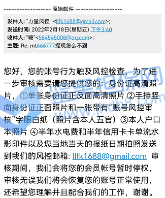 2022年3月1日我在1xbet充值了1万8的金额,想买各种比赛,到昨天3月7日,因为运气好,这个1万8的金额已经变成了6万元,我想取款,结果得到的消息是必须连续安全部分审核,我好奇为何注册的时候,存款的时候没有让我注册,但是也没多犹豫。随后就开始了一系列莫名其妙且扯皮的的过程。首先是一个说英文的客服回复我,让我提供银行流水证明,还必须是原件,带公章的,中国银行刚好可以开具这部分信息,我就提供了,然后让我提供身份证正反面,我也提供了,最奇葩的来了,让我把身份证放脸旁边拍一个自拍,带上他发我的那个邮件,这个有点过分了,但是我还是照着要求做了,随后他和我说资料审核结束,随后会有人联系我。我等了好久还是没有人联系我,我就主动发邮件询问,结果这次是个中文客服回复我,让我在不同的角度再拍一次身份证照片,我照做了,然后以文件大小不足1m为由让我重拍,我重拍之后,又换了个英文客服,说我提供的不是源文件,无法受理。我之后用不同角度/不同光线/甚至是扫描件发送我的身份证照片,都和我说不是他们要的文件,我随后发了我的护照照片,也是扫描件,一开始回复我要jpg照片文件,我发了以后,又回复我说不是他们要的文件了。这一系列过程下来让我觉得他们就是在刁难我,甚至是在骗取我的个人信息。希望鉴黑网可以帮我一下,帮我追款,谢谢。我的1xbet账号是388834001
