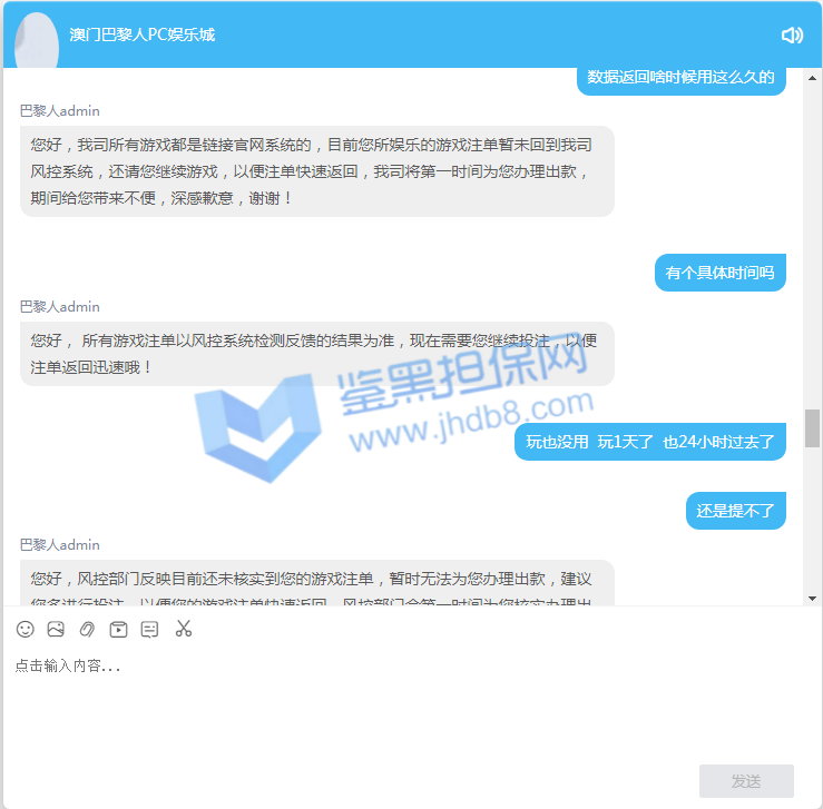 4.用户提交维权需为本人提交,若代替让人发布维权鉴黑担保网将拒绝受理;
