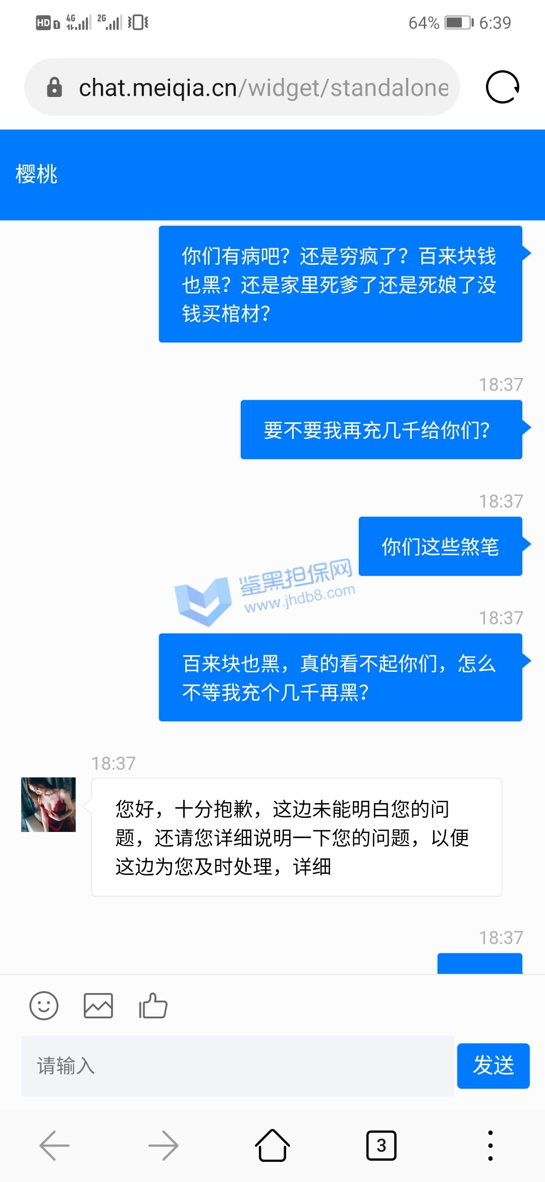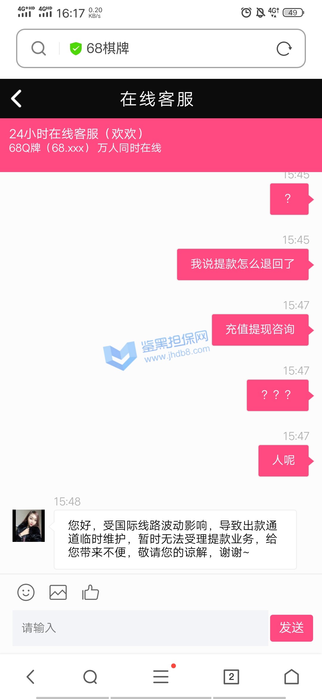 4.用户提交维权需为本人提交,若代替让人发布维权鉴黑担保网将拒绝受理;