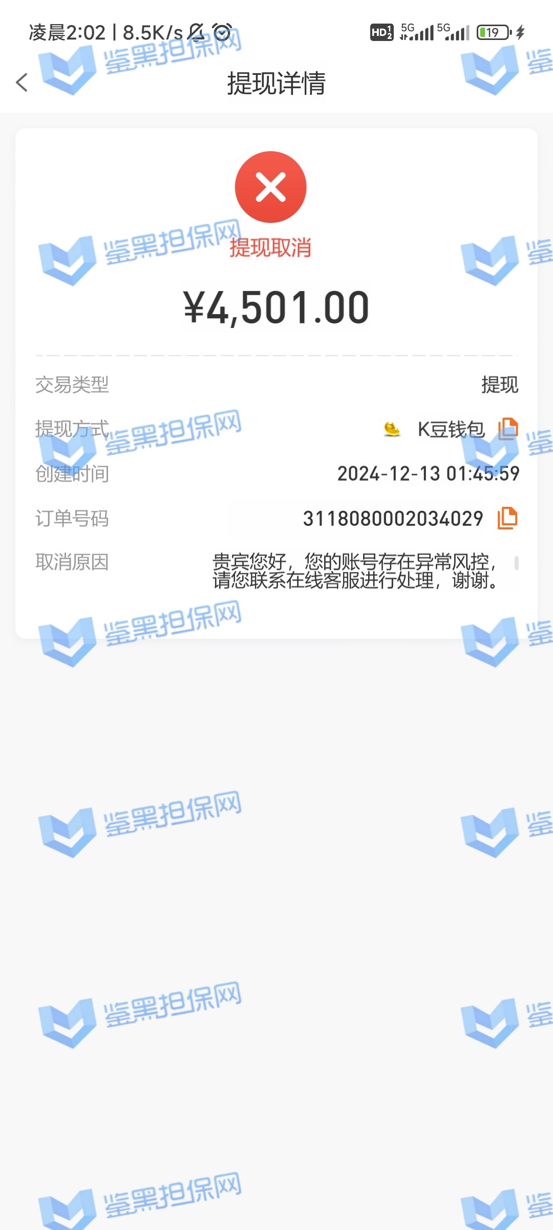 3、由于再次提款被要求再次存款验证之后,鉴黑维权专员联系该平台相关负责人多次交涉,对方态度明确必须充值指定1500进行认证,原因是因为在集团下平台有账号存在套利行为,必须解除风控后才可以提款,关于这个说辞也没有实际证据提供加持,存在套娃行为,这种行为乃杀猪盘的惯用阴谋。