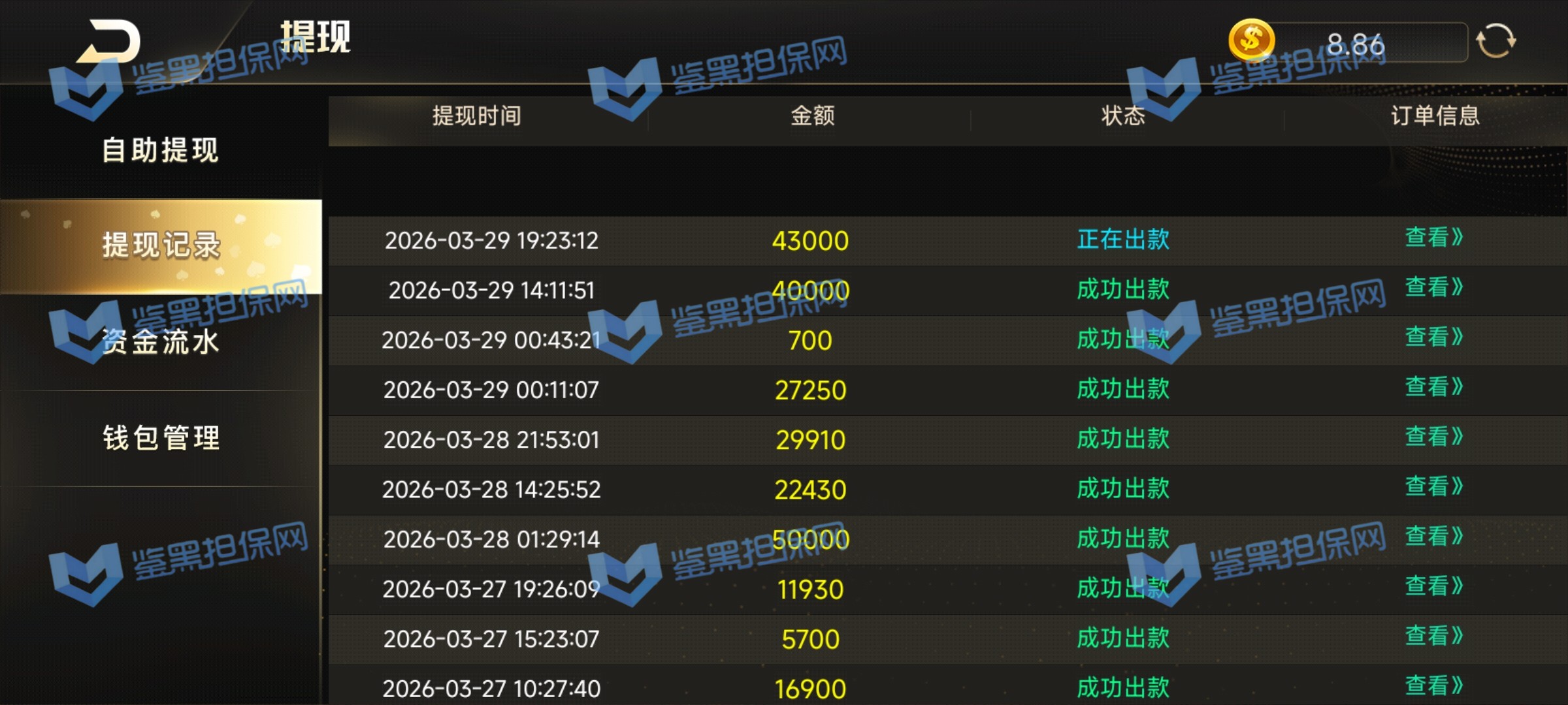 3、提款43000从此会员留言得知已经完成出款事宜,但是担保网不建议继续在此继续投注游戏,避免后续以其他理由拒绝出款造成损失。