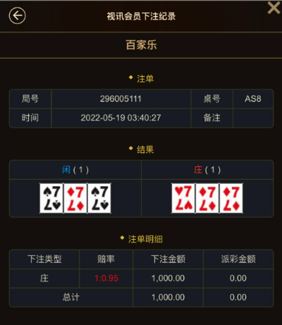| 不断的坚持奋战也是为了能抓住更多机会赚到,开局一手梭哈去压庄路,结果也是顺利的开出一手八点秒杀对家,带来了满意的赢利也是增加更多前进动力奋战,继续加注梭哈去压闲路,好在最终的努力没有白费,惊险以小点数取胜庄家,打出两手连胜的战绩带来了近三百大洋的赢利,终于告别连黑的节奏但愿好的运气能稳住。 |