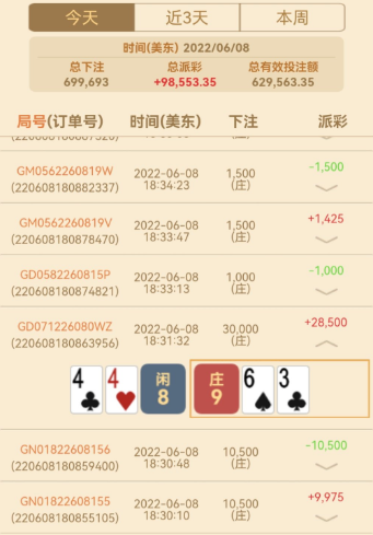 2.例:会员10号在开元棋牌场馆游戏产生10,000元负盈利,同时在欢乐棋牌场馆游戏产生20,000元负盈利,则该会员负盈利为30,000元。