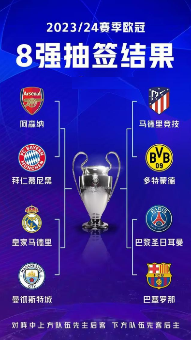 其中西甲成为头号赢家,总共4队晋级,只有塞维利亚垫底出局,意甲、德甲分别各有3支球队出线,英超只有曼城、阿森纳过关,曼联、纽卡携手出局,同时葡超、丹超、荷甲、法甲各有1队。