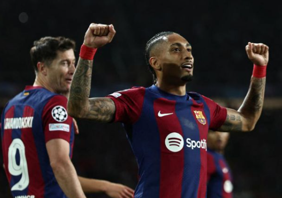 为巴萨取得领先优势的拉菲尼亚,两回合对阵巴黎已经打进3球,本赛季欧冠进球数达到4个,外加3次助攻,独造7球排在巴萨队内第一位。